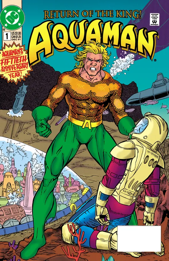 Aquaman discovers Poseidonis is under attack and takes on an entire fleet of submarines single-handedly.