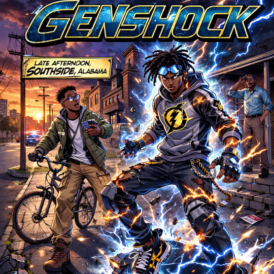 When unexplained energy surges begin disrupting the city’s power grid, a young lightning wielder known as GenShock finds himself at the center of a phenomenon far greater than he understands. Streetlights flicker. Devices glitch. The air hums with unnatural charge.