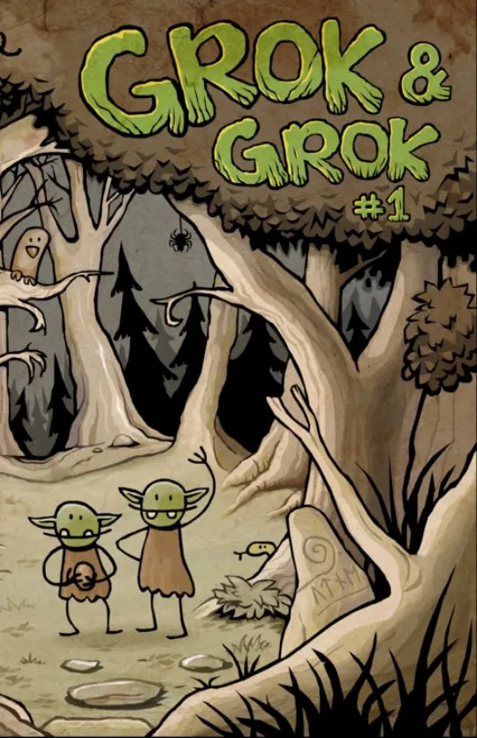 Grok and Grok explore an old fortress, discover a world beneath their cave and a portal to a strange jungle.