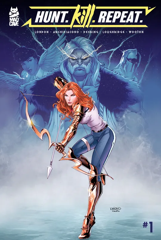 (END OF ARC) After what was a brutal and bloody family feud, Artemis prepares for her assault on Olympus with revenge on her mind! Ancient secrets are revealed and an Olmypian-sized twist awaits that you absolutely cannot miss! Bonds will be broken and mended in this fast-paced, emotional issue of Hunt. Kill. Repeat.