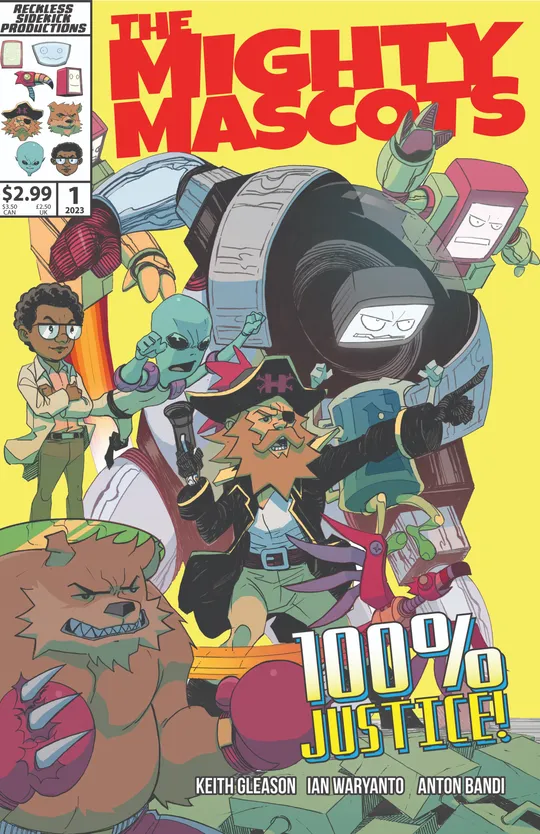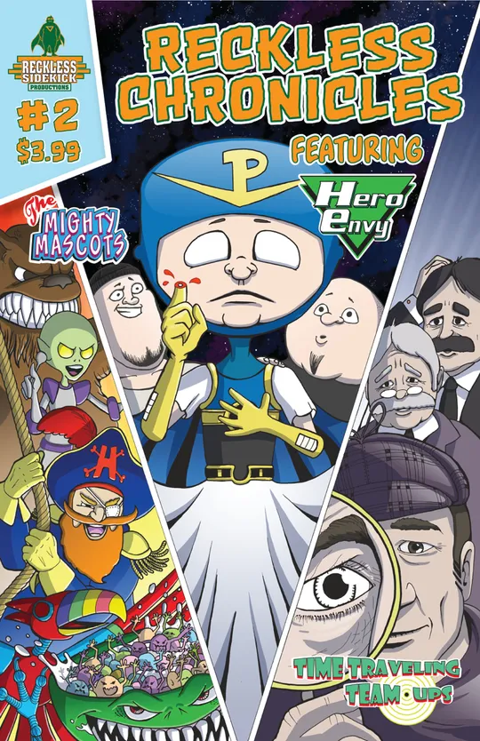 The Hero Envy story line continues as JD And Dekker finally make it to the planet where they previously battled El Moco-Conpan and what they discover will change their lives forever. In the second installment of the Mighty Mascots Origins, the newly formed heroes are thrust into battle with Doctor Baneful's goons as Professor Manny Coleman desperately tries to piece to together what's happening around him. In the next Chapter of Time Traveling Team-Ups Harland is united with the time traveler and Sherlock Holmes but there's no time for reunions as they quickly race to Miskatonic University in pursuit of the evil professor Moriarty.