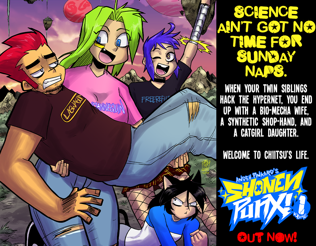SHONEN PUNX! Vol. 1 is officially LIVE! I’m thrilled to announce that the first 146 pages of the Hyper-Science saga are now available.The Hook: Chiitsu Pinkada just wanted a nap. Instead, his twin siblings (Moz and Boi) hacked a multiversal backdoor to the Hypernet and brought his past to life. They stole a...